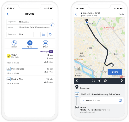 By integrating the Geovelo API, Ile-de-France Mobilités helps its users find the best solution for their bike journeys: