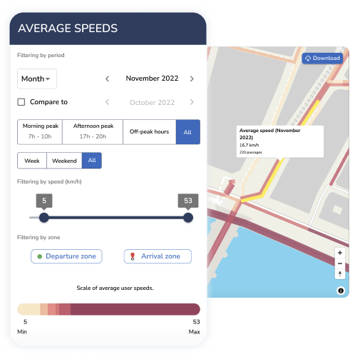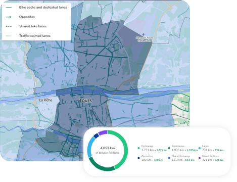 Fine-tune your cycling policy using our platform's analysis tools: improve your knowledge of cycling flows, identify priority areas to secure, and measure the impact of your decisions.