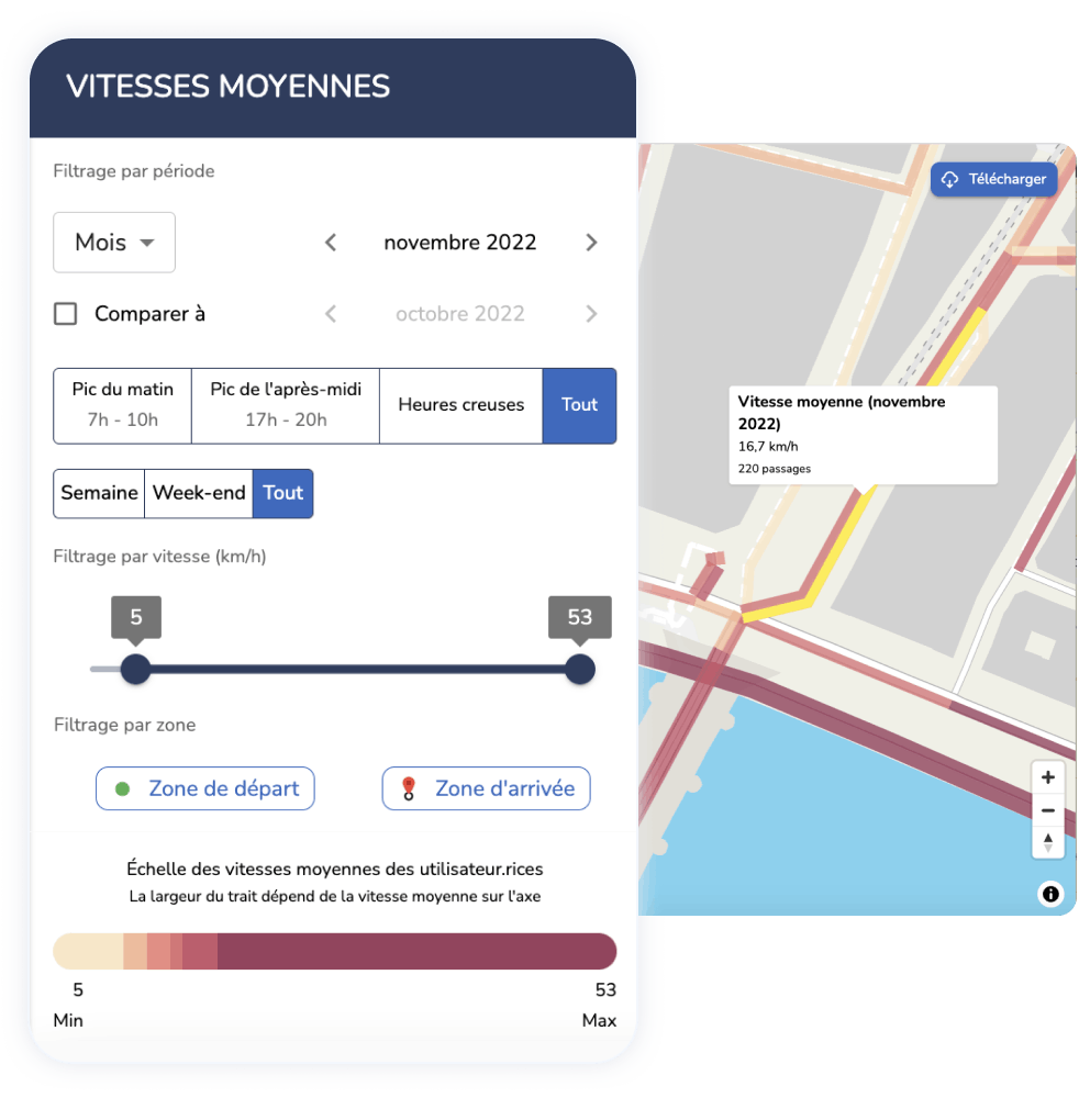 Répartition du trafic vélo et analyses sur l’utilisation de votre réseau cyclable.