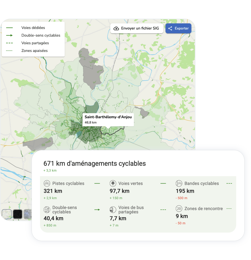 Visualisation et statistiques sur votre réseau vélo : aménagements, parkings, services, etc.