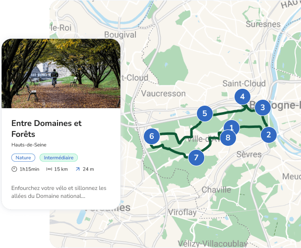 Profitez de l'application Geovelo pour mettre en avant les itinéraires loisir courtes ou longues distances qui traversent votre territoire. Rendez vos itinéraires et vos POI plus faciles à découvrir pour les cyclistes.